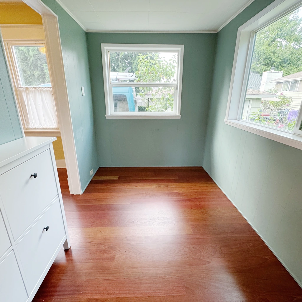 The home is the epitome of cozy, with brazilian cherry hardwood floors, bright sunlight from all directions, and the smell of the sea.